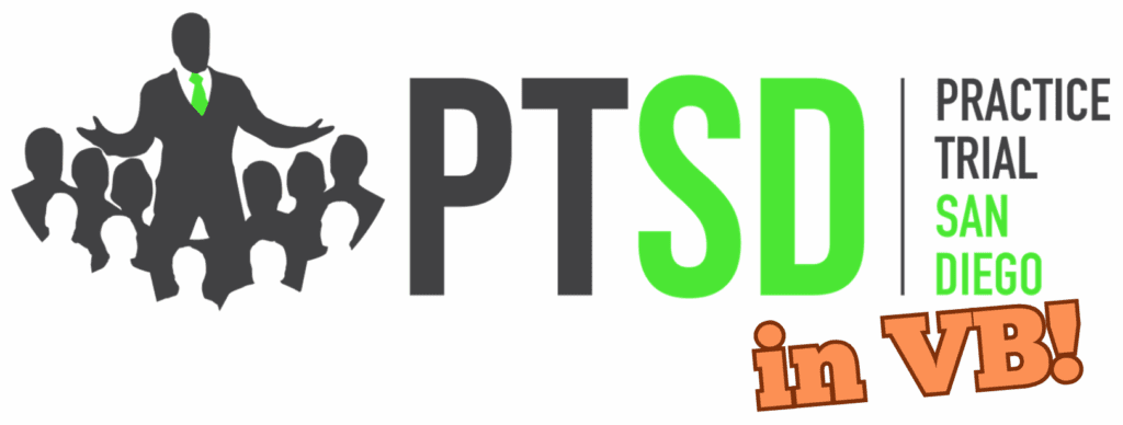 Rich Mackie of Mackie Injury Lawyers is the Founder of the nationally recognized trial practice group. Practice Trial San Diego (PTSD) and Practice Trial San Diego in Virginia Beach (PTSD in VB) are San Diego and Virginia Beach groups for trial attorneys to get on their feet, practice foundational and advanced trial presentation skills, and sharpen their skills of advocacy. A fun, collaborative, and safe environment for trial attorneys to learn, practice, and perfect their trial mechanics so they can perform at their best when it counts, in trial